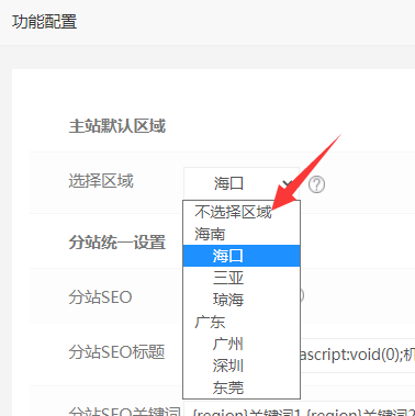 可以不選擇區(qū)域,當(dāng)選擇默認(rèn)城市以后 如?  則主站點(diǎn)打開(kāi)默認(rèn)?冢瑂eo也默認(rèn)主站的