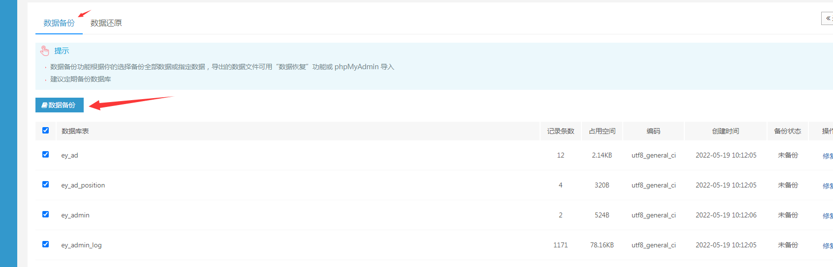 點(diǎn)擊數(shù)據(jù)備份