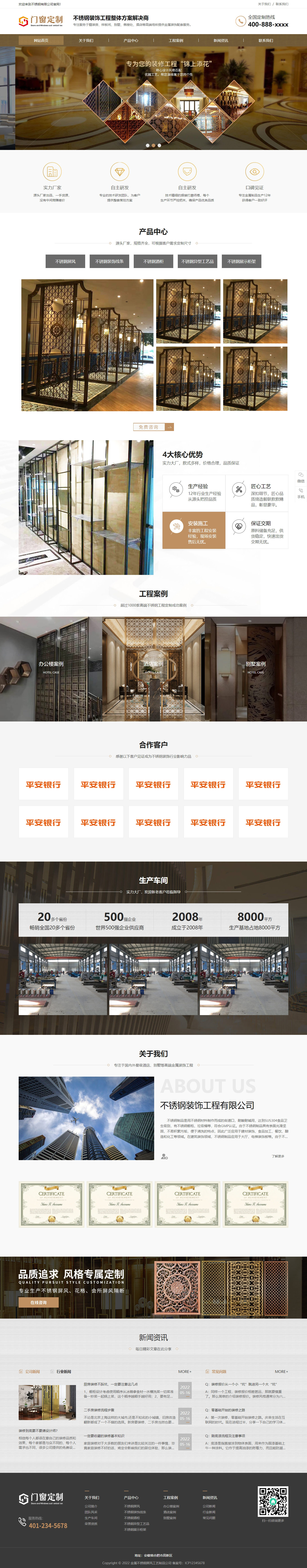 金屬不銹鋼屏風(fēng)工藝制品公司pbootcms模板(PC+WAP), pbootcms內(nèi)核開發(fā)的一套企業(yè)網(wǎng)站模板,安裝后和演示站一樣,模板簡潔大氣,兼容電腦、平板、手機(jī)等移動設(shè)備。