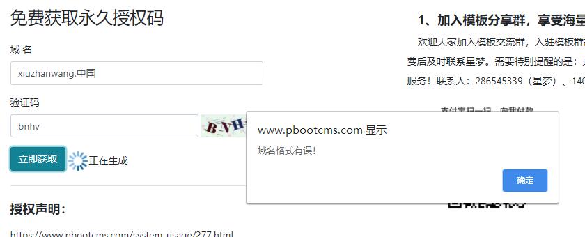 PbootCMS中文域名獲取授權(quán)碼注意點