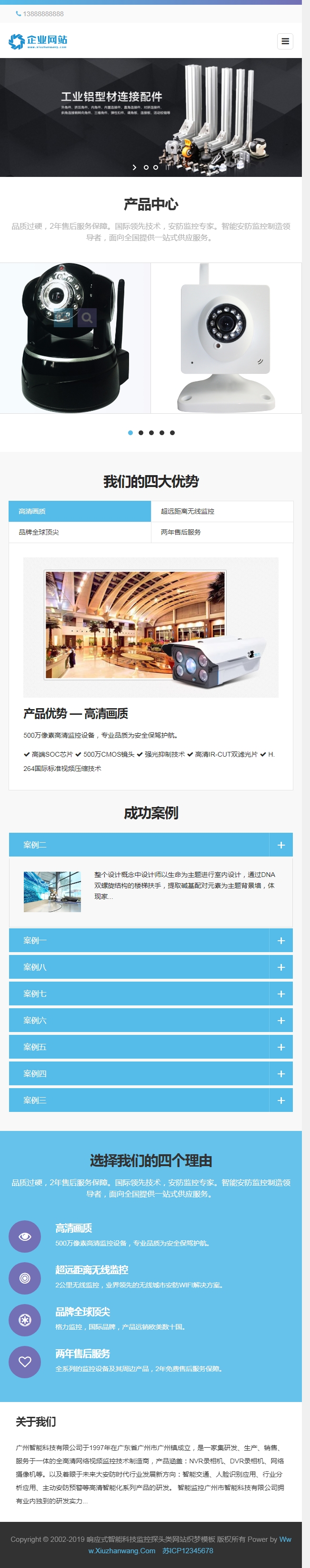 智能科技監(jiān)控探頭類響應(yīng)式網(wǎng)站織夢模板